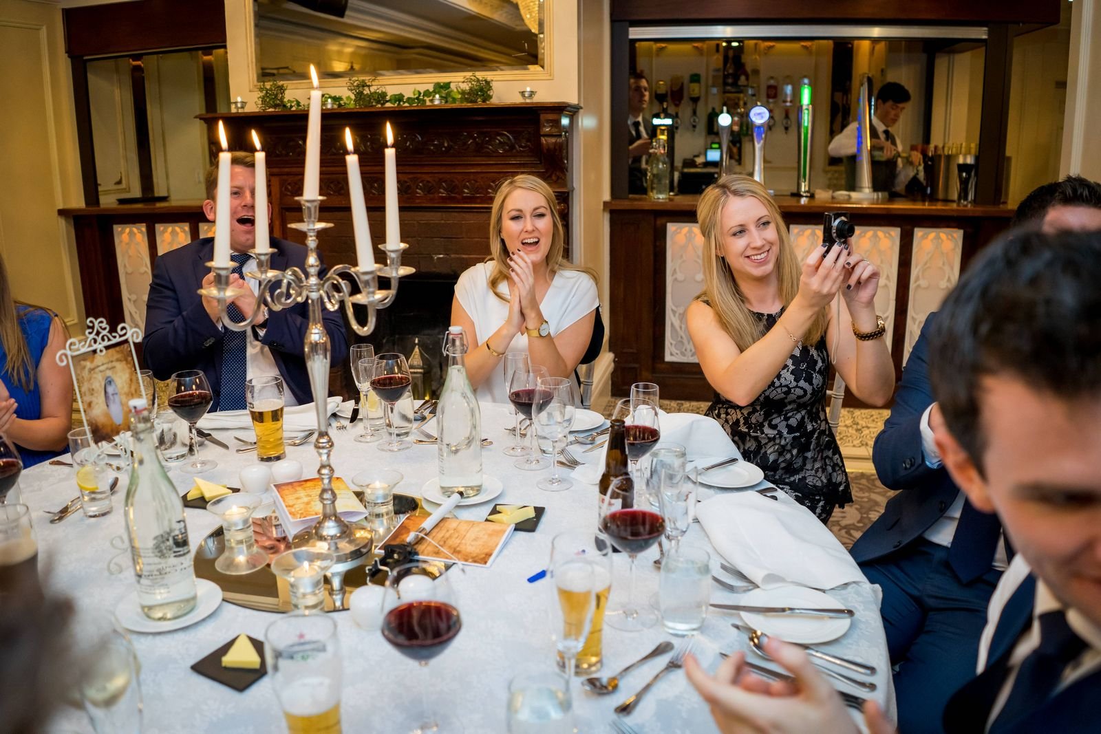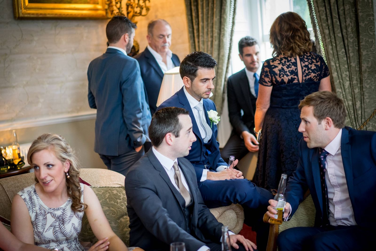 The drinks reception followed, giving everyone time to relax. During this part of the day, we focused mainly on natural, candid photos – guests chatting, laughing, and enjoying the castle grounds, both indoors and outside.