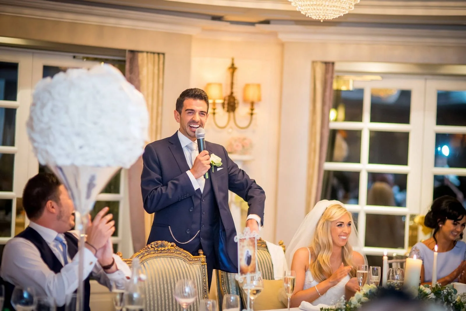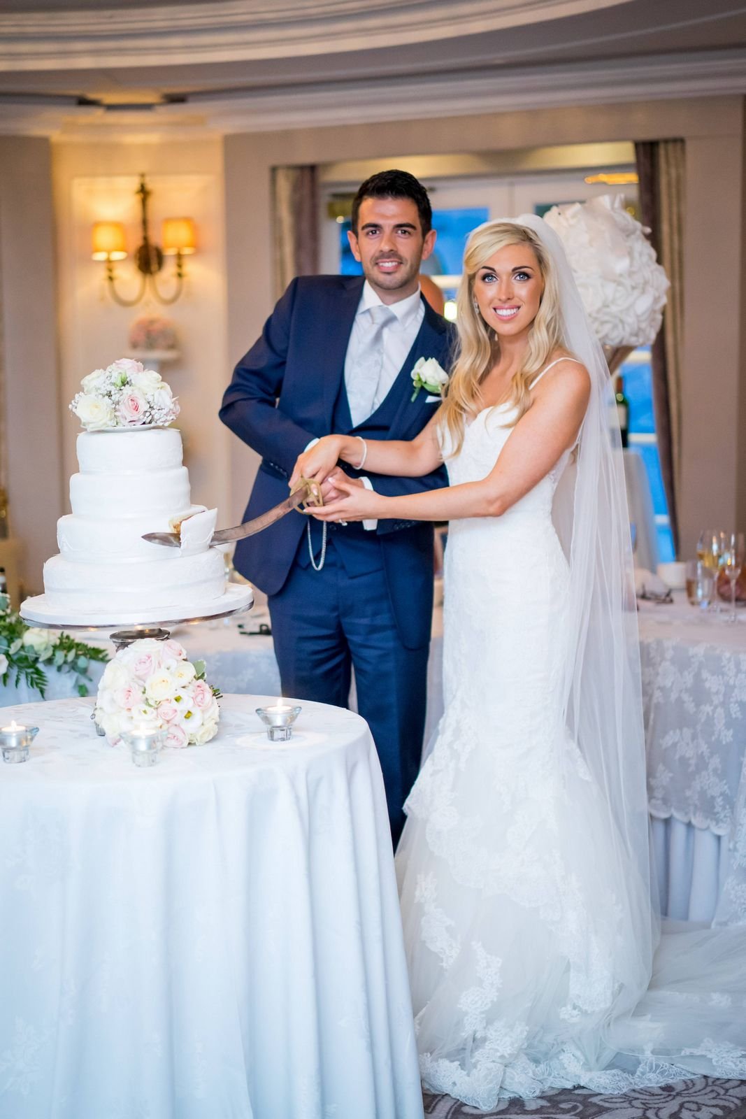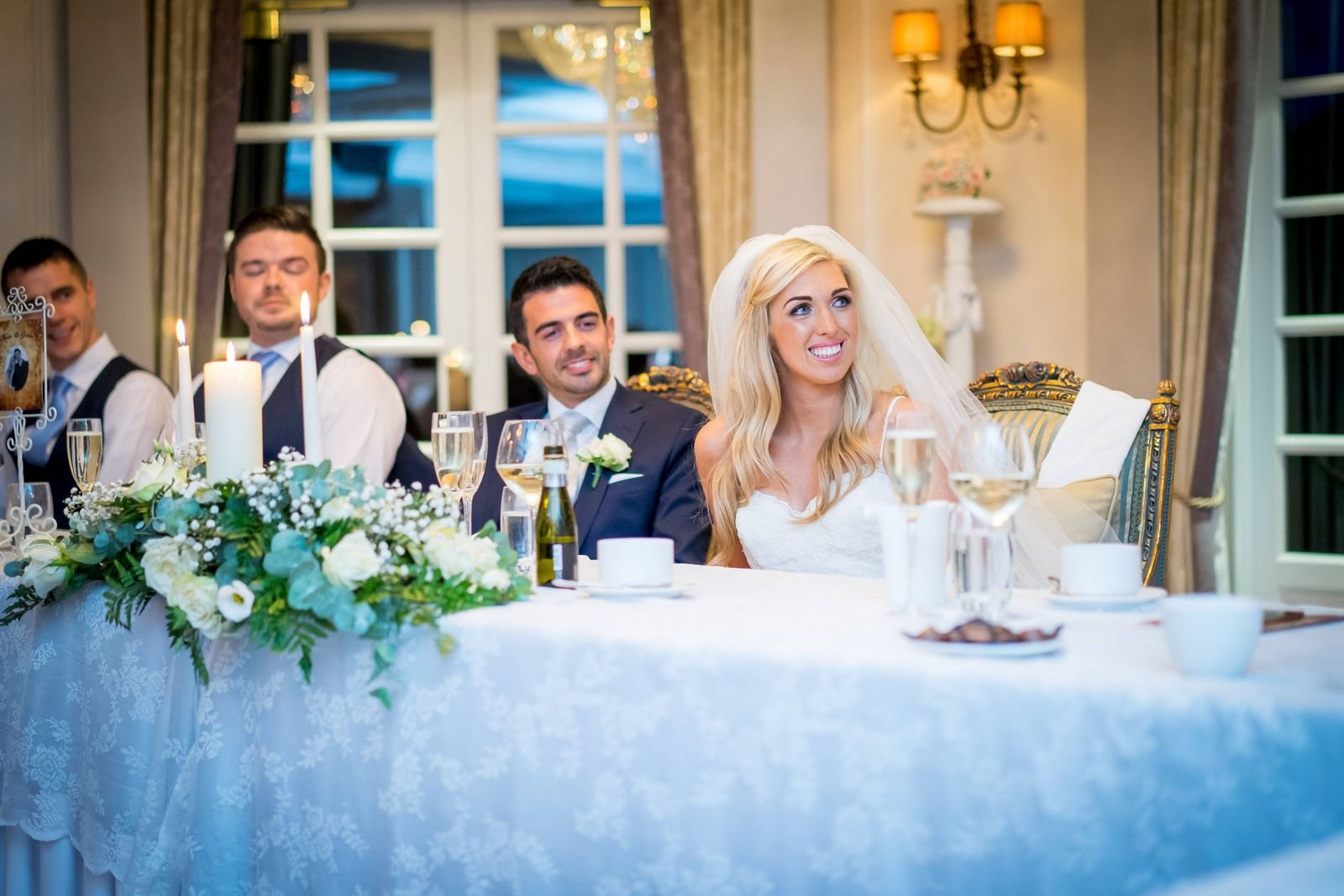 Once the drinks reception ended, guests were invited into the ballroom for the grand entrance, dinner, and speeches. After the speeches, Sarah & Keith cut the cake and we took a few evening photos outside while the light allowed.