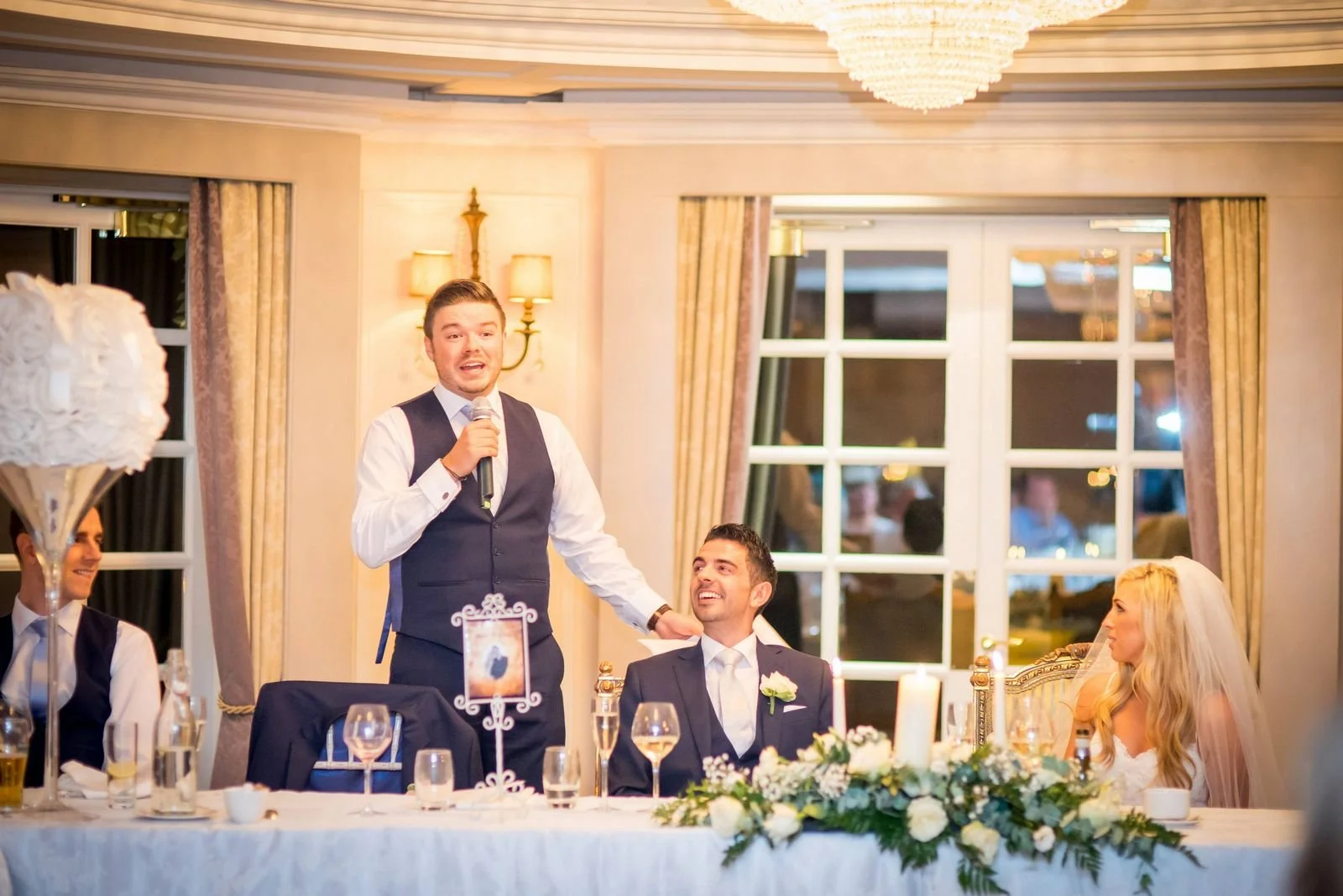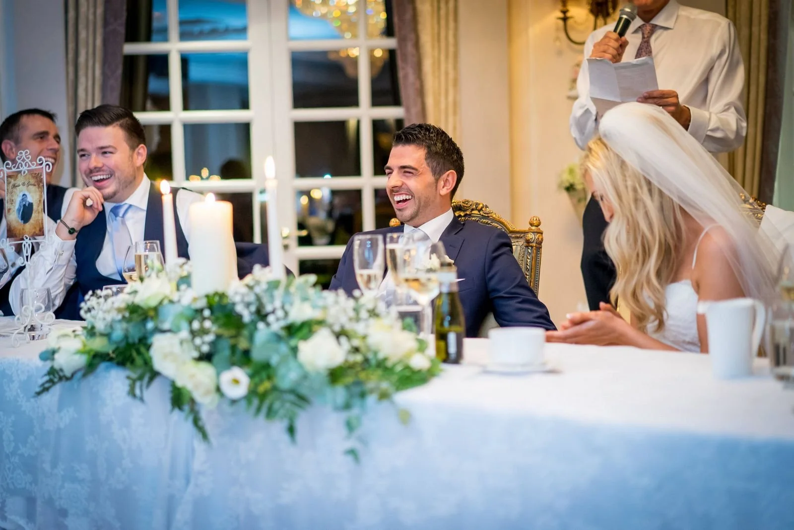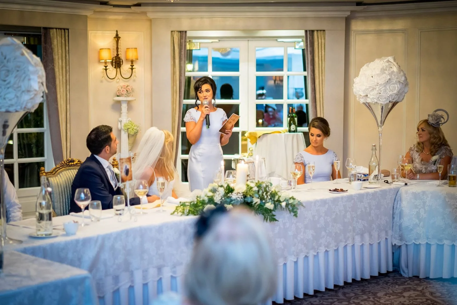 Once the drinks reception ended, guests were invited into the ballroom for the grand entrance, dinner, and speeches. After the speeches, Sarah & Keith cut the cake and we took a few evening photos outside while the light allowed.