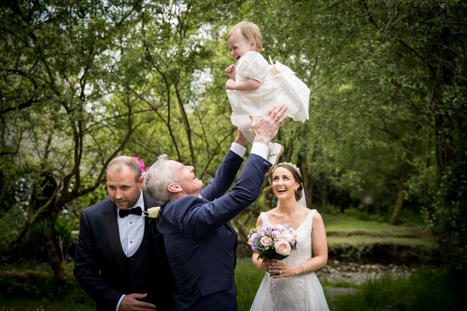 Afterwards, we captured family and couple portraits around the village, using the beautiful surroundings to create natural, relaxed photographs. The celebration continued with a drinks reception and dinner, supported by the warm and welcoming Brooklodge team.