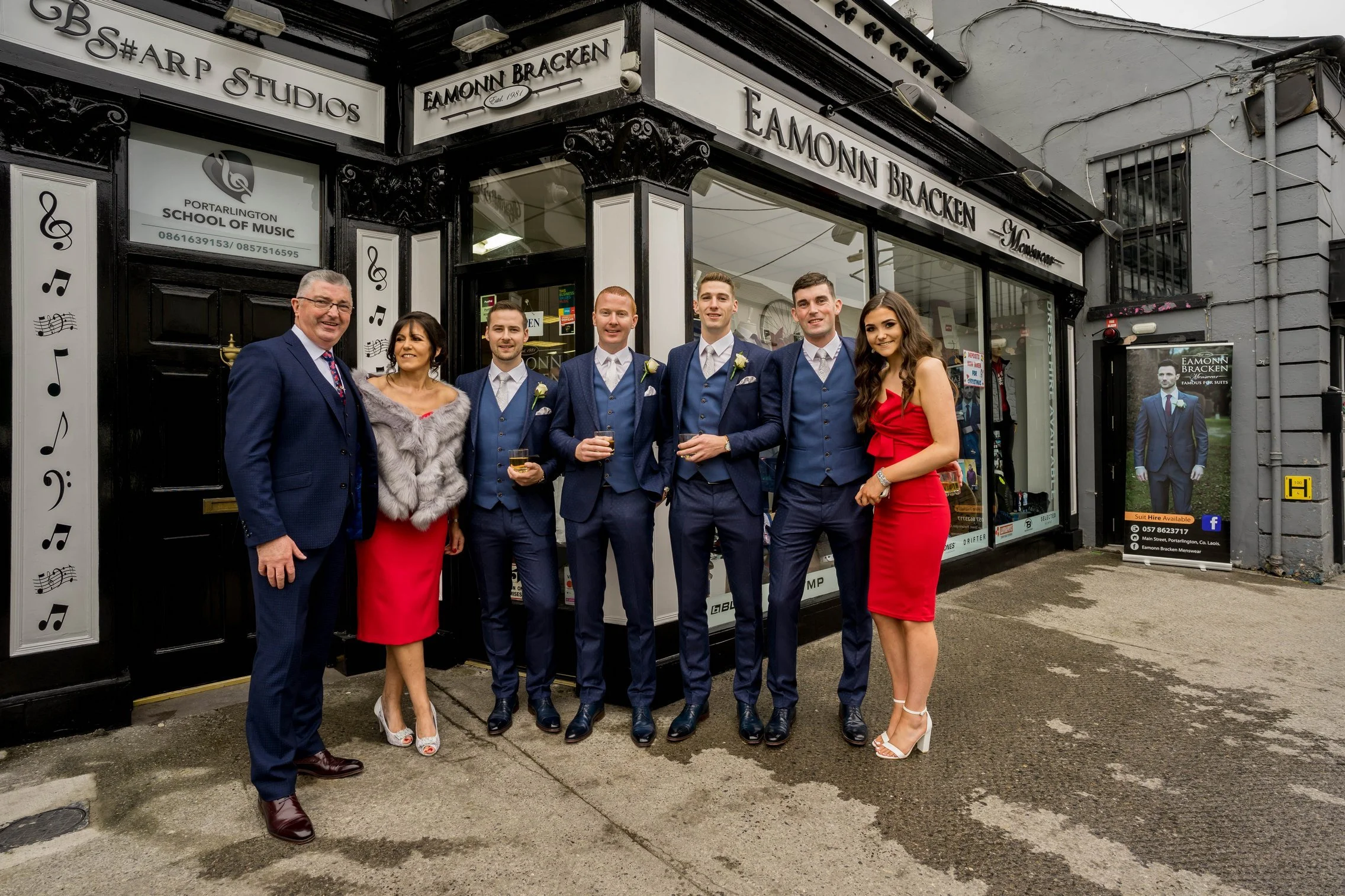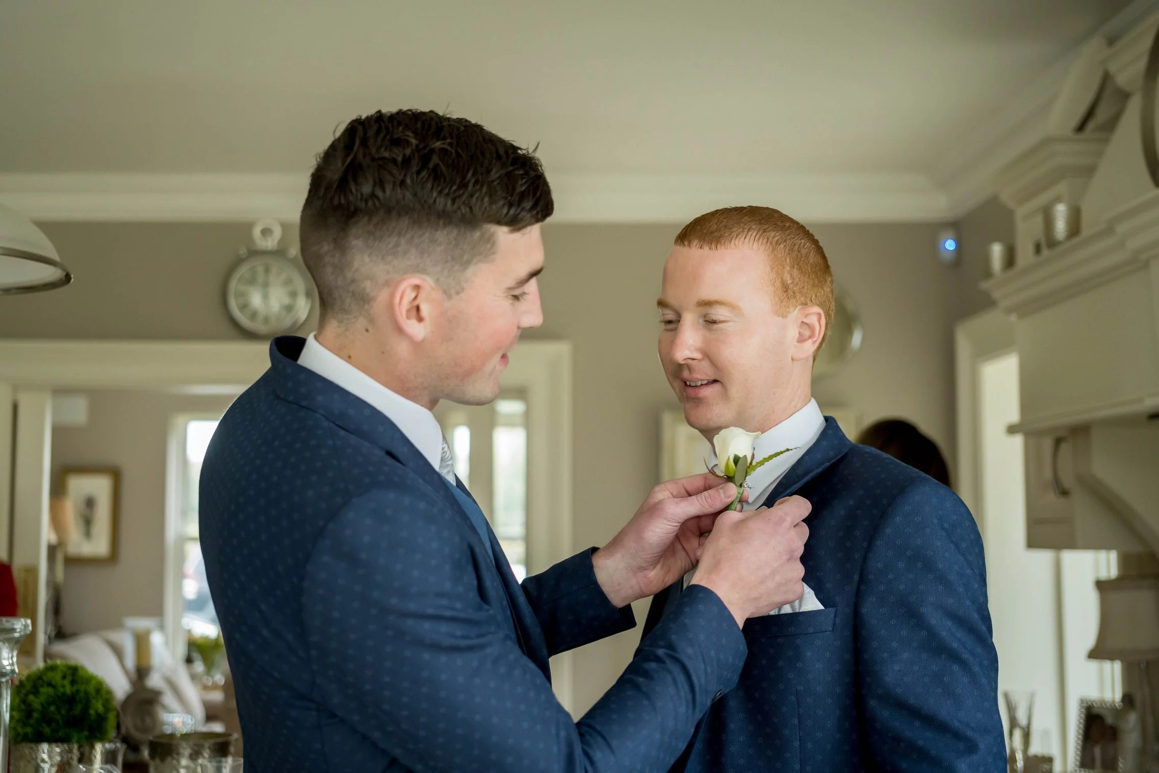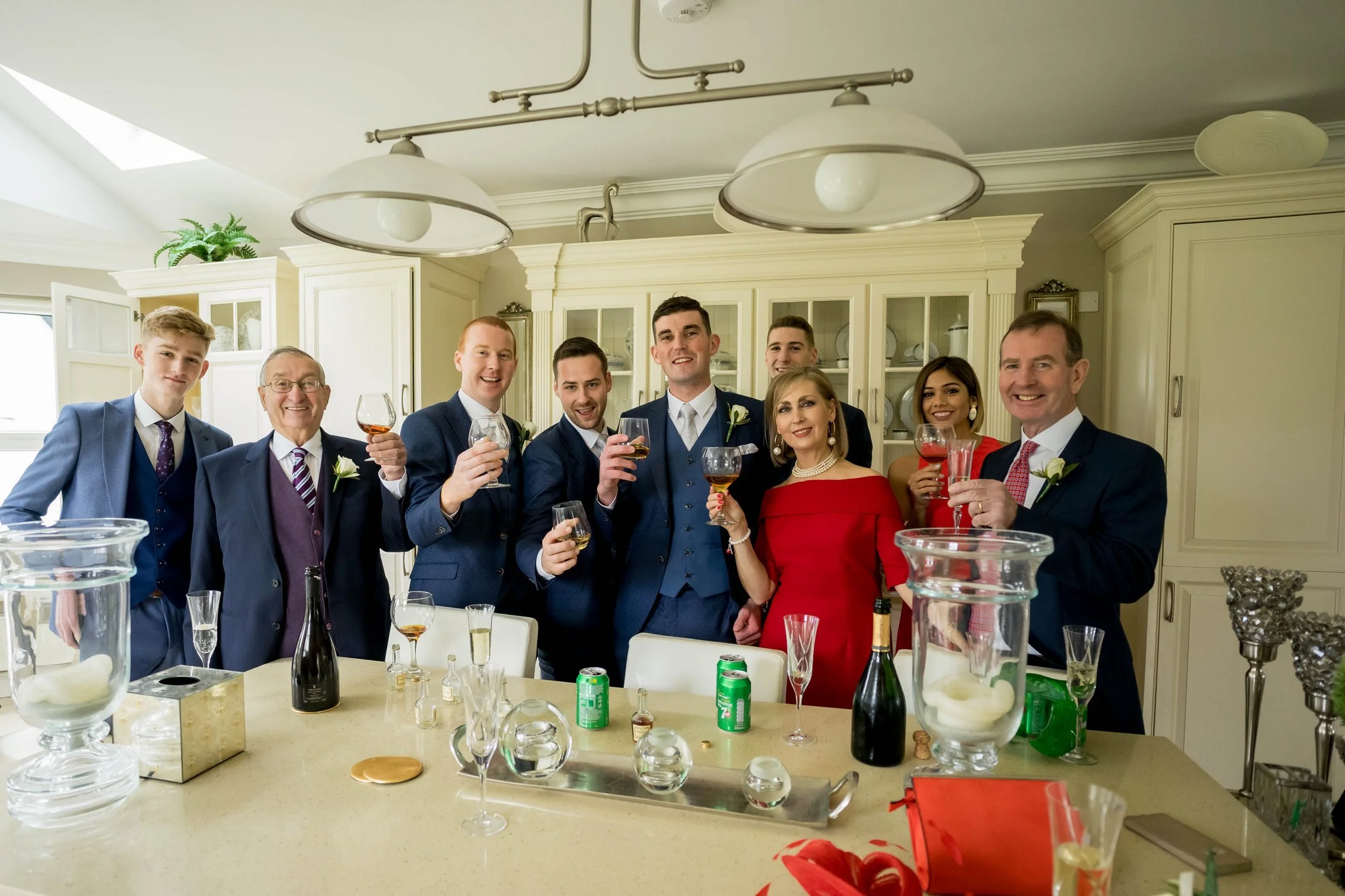 The day began with both bride and groom preparing in the comfort of their family homes. Kate’s preparations were full of laughter, toasts, and heartfelt moments with her mum helping her into her dress. Meanwhile Connor was hanging out with his crew — including a quick shot outside a local pub with a bottle of whisky — capturing the joy and nervous excitement in equal measure.