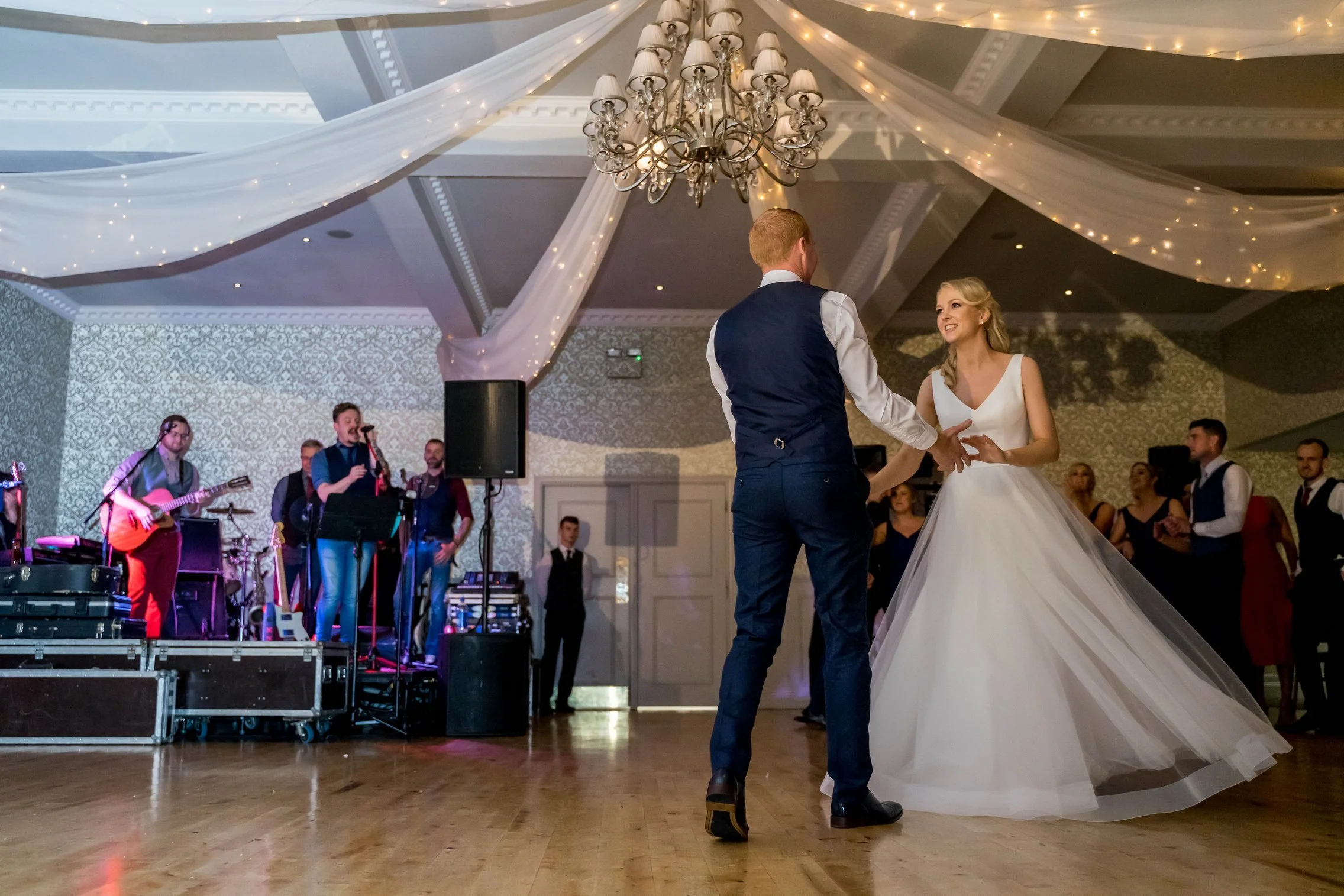 As evening fell, I took Kate and Connor out for some atmospheric night portraits around the hotel. I stayed on to capture their first dance.