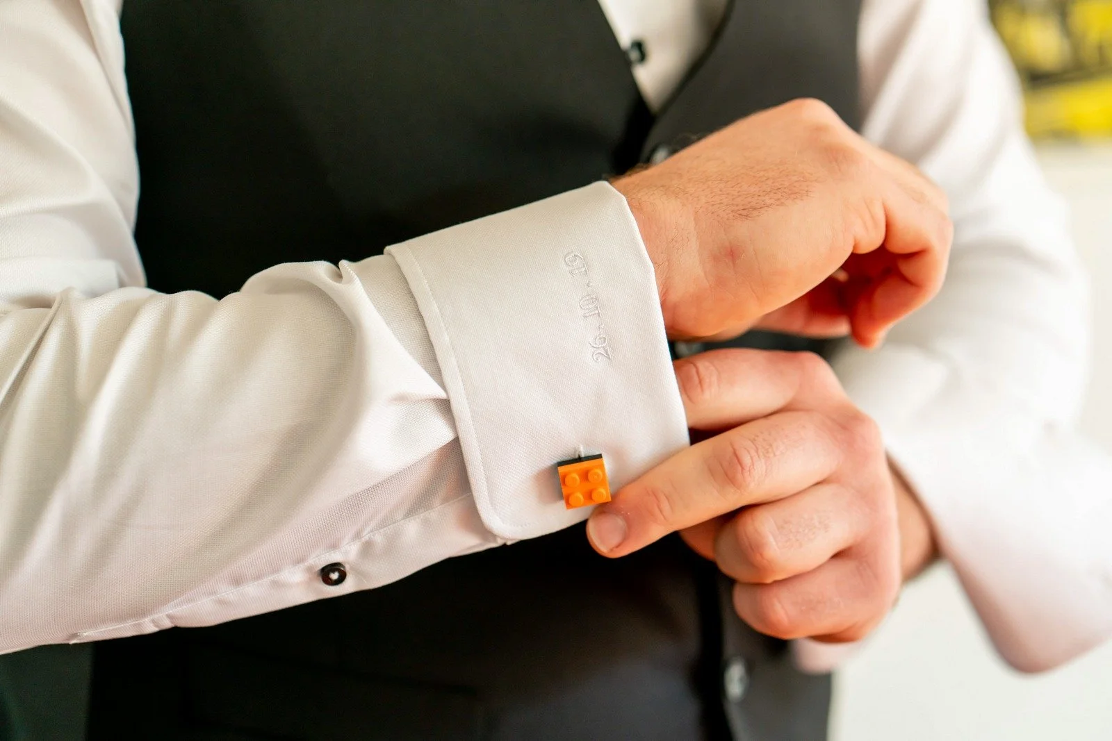 The morning preparations were calm and full of anticipation. Small details were carefully prepared, setting the tone for the day ahead. We loved all the little Lego touches that popped up during the morning – the ring box with Lego bride and groom figures, the Lego handcuffs – it was such a fun, brilliant detail that really made the day feel like them.