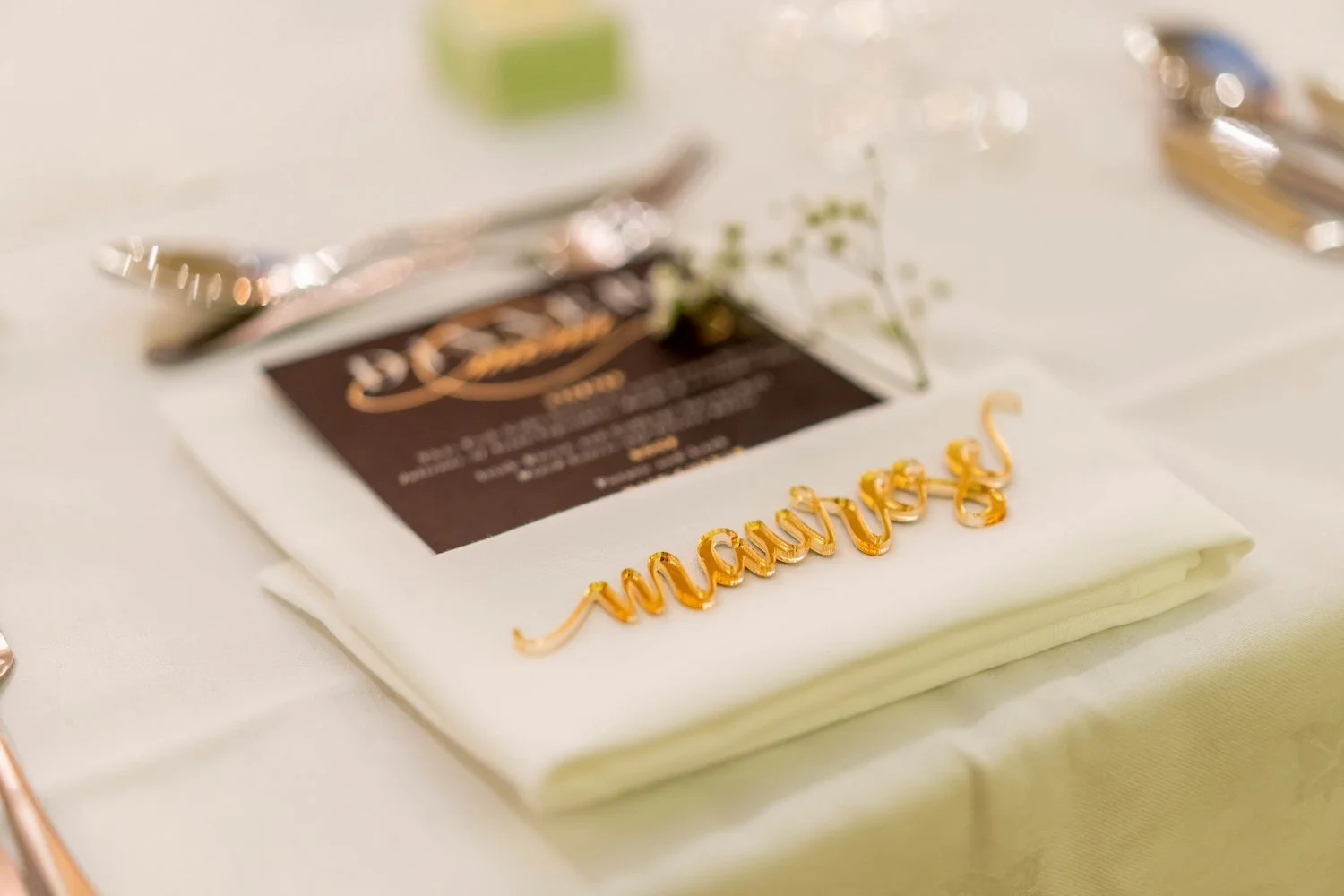One of the standout details was the printed gold guest names, a stylish and elegant touch that fitted beautifully with the overall look of the wedding. These small details really elevated the décor and showed how much thought Maurese and Daniel put into their day.