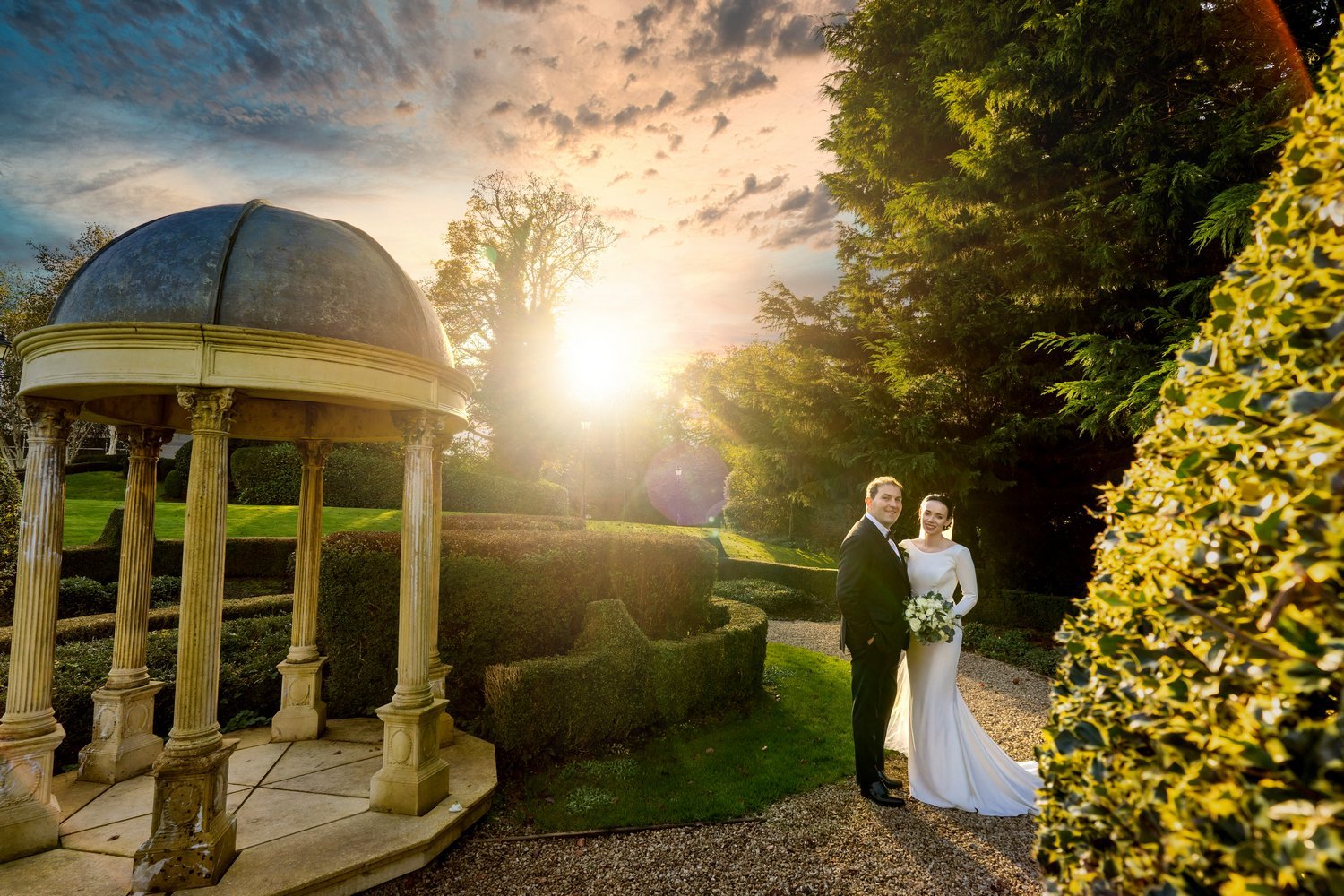 Golden hour moments with Maurese and Daniel in the gardens of Dunboyne Castle Hotel