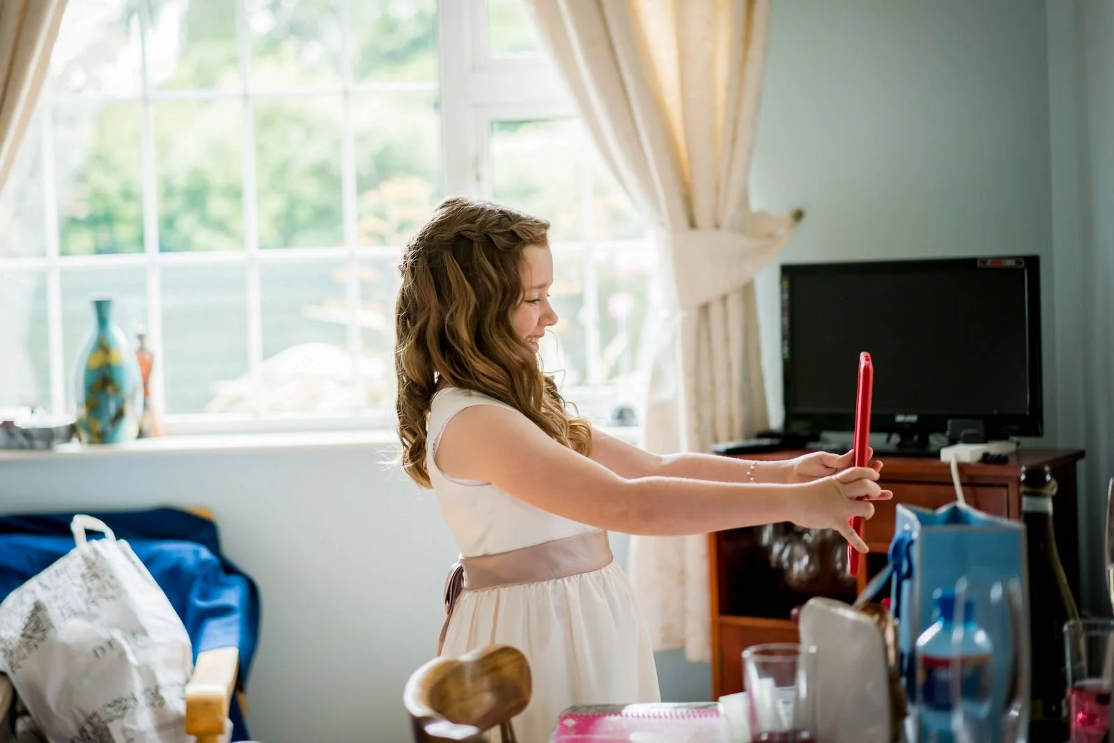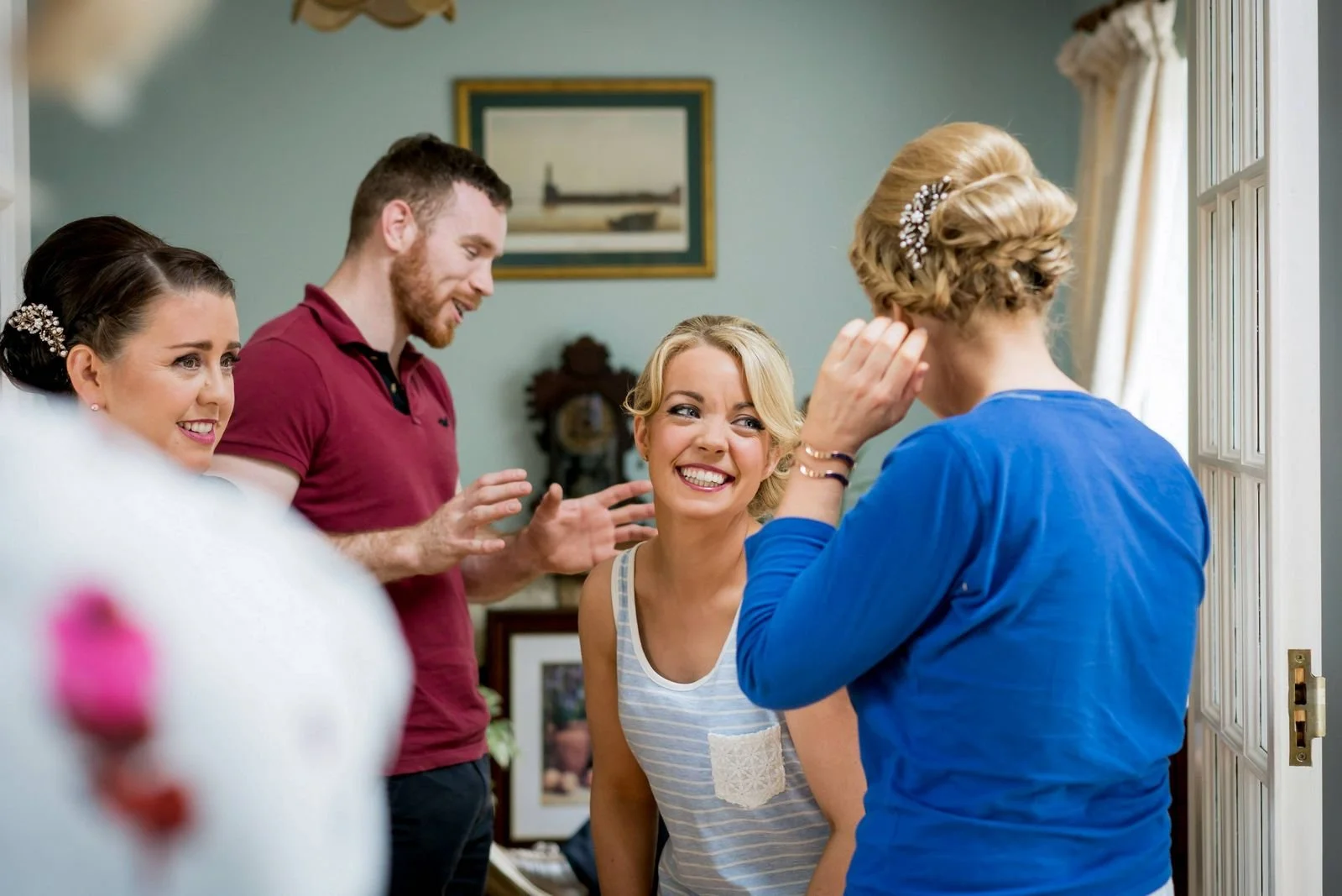 Declan was getting ready at the Millrace Hotel in Bunclody, while Aine prepared at her parents’ home. This setup works really well, as both sides of the morning are captured properly without rushing or missing important moments.