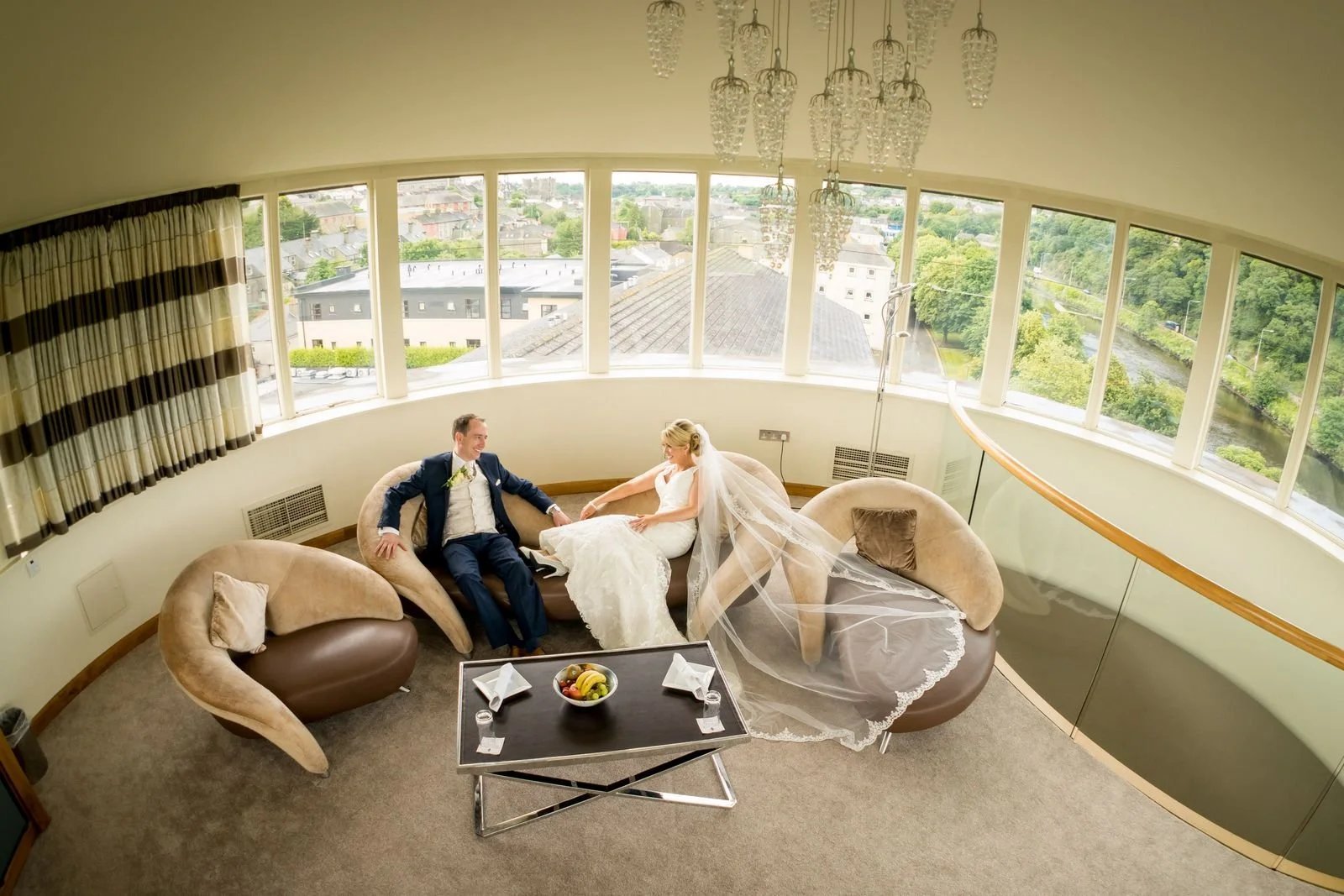 the bridal suite at the top of the building, with a 360-degree view over Enniscorthy