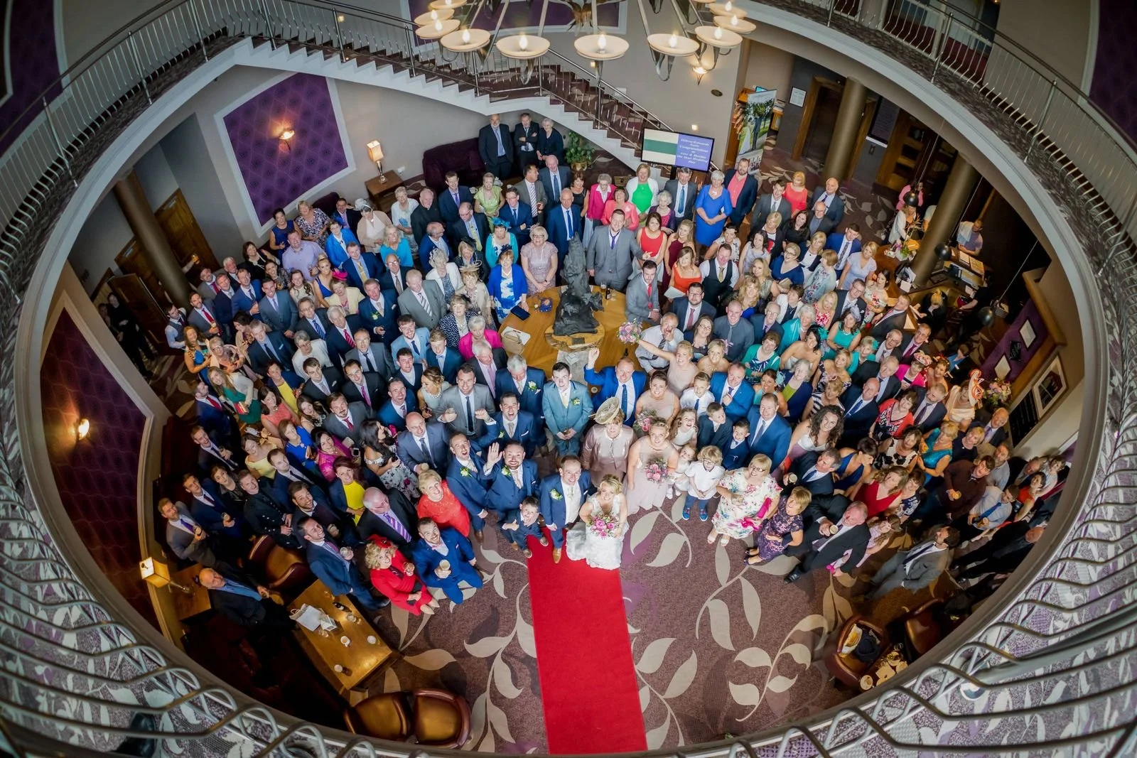 All guests gathered on the iconic staircase at the Riverside Park Hotel, Enniscorthy.