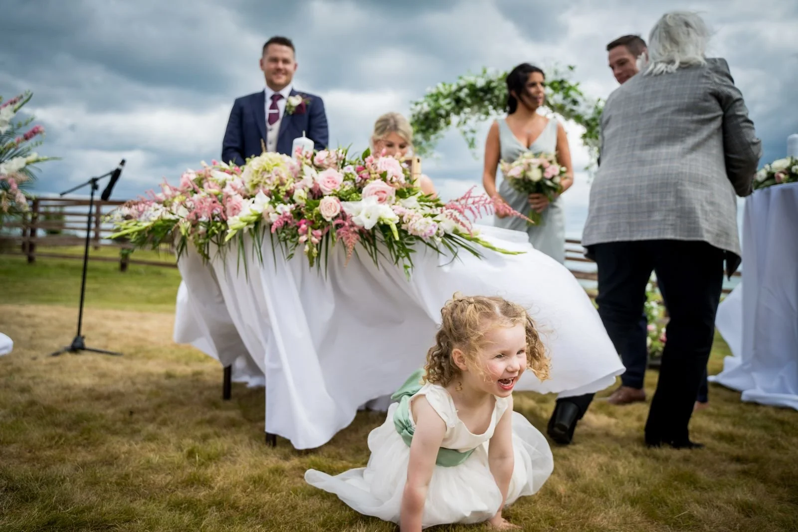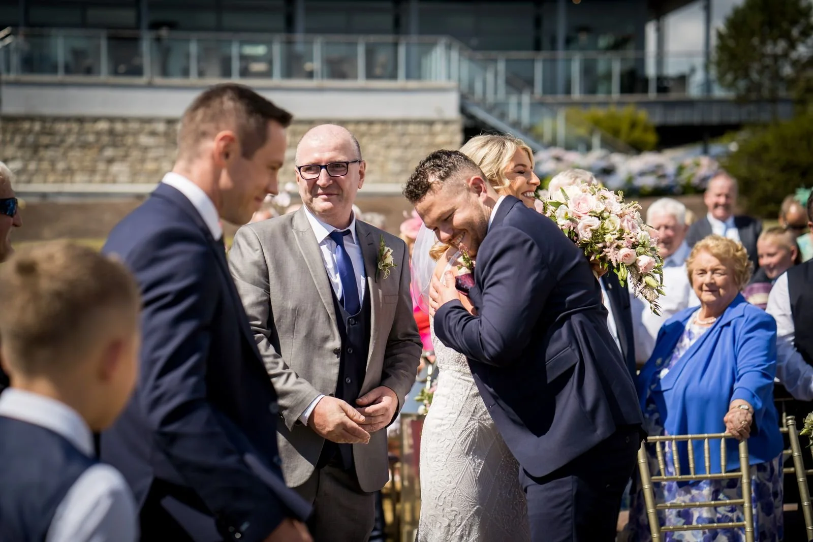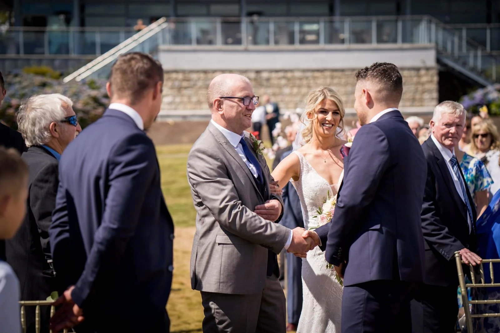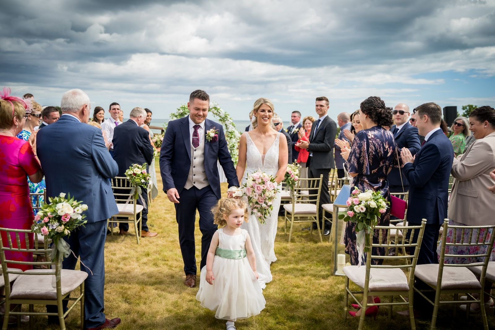 Susan and Ciaran’s summer wedding at Seafield Hotel was relaxed, romantic, and surrounded by nature. Their outdoor ceremony was beautifully styled with floral arrangements by A Daisy A Day, creating a perfect setting for exchanging vows.