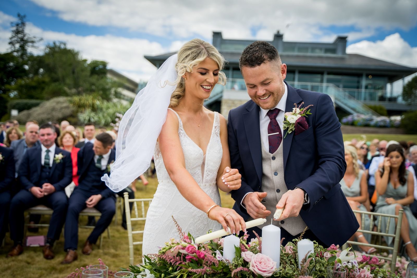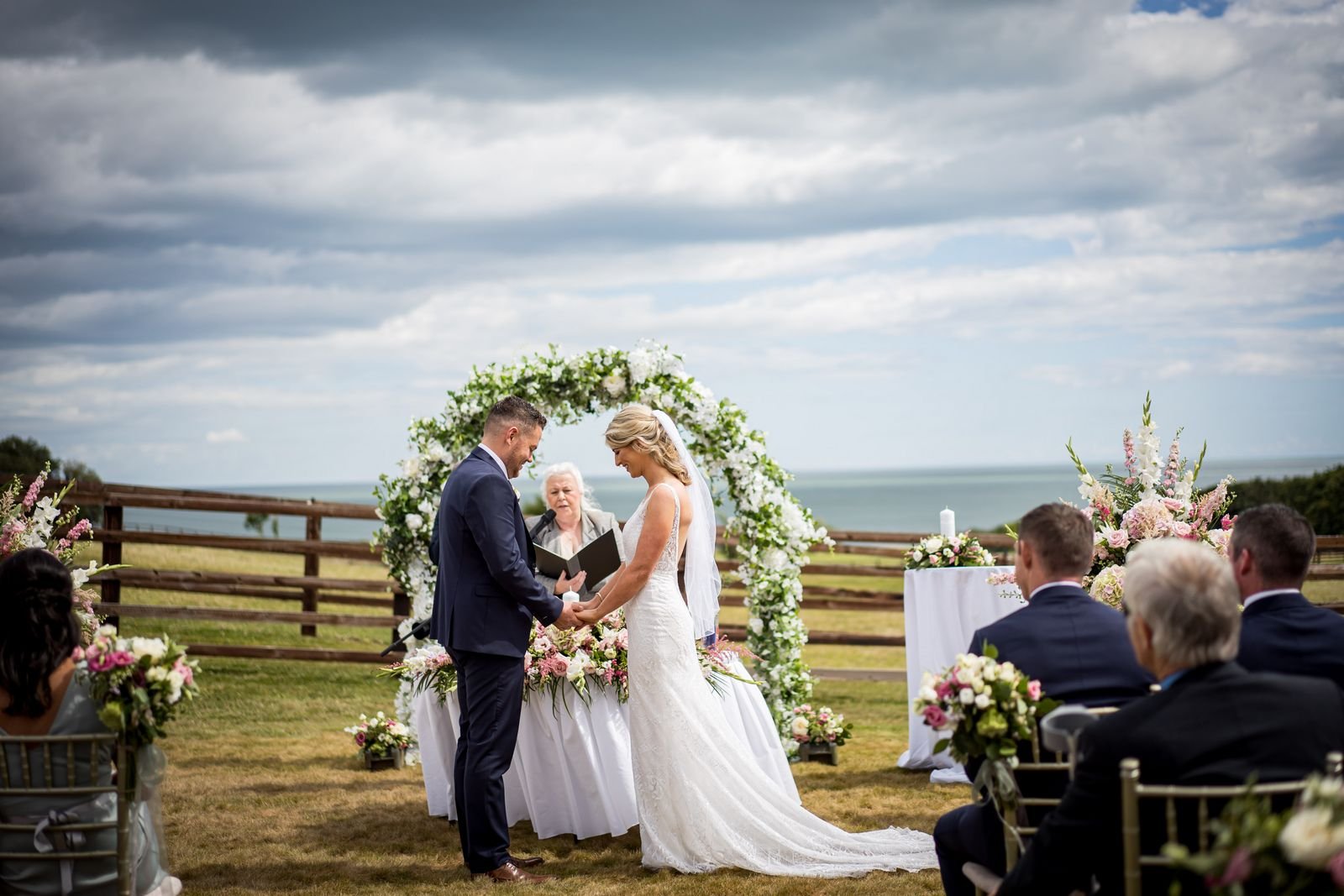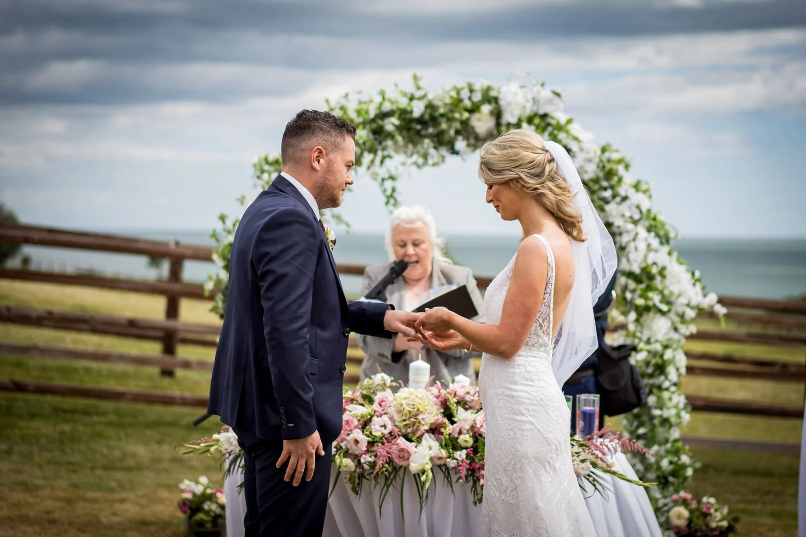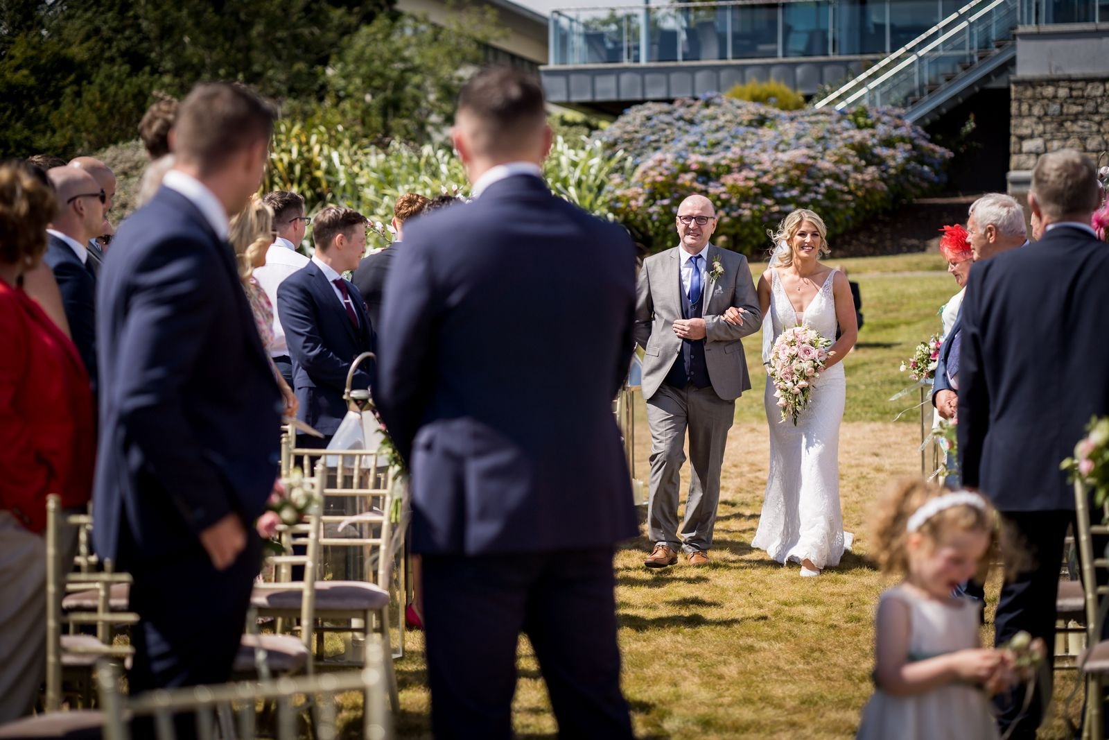 Susan and Ciaran’s summer wedding at Seafield Hotel was relaxed, romantic, and surrounded by nature. Their outdoor ceremony was beautifully styled with floral arrangements by A Daisy A Day, creating a perfect setting for exchanging vows.